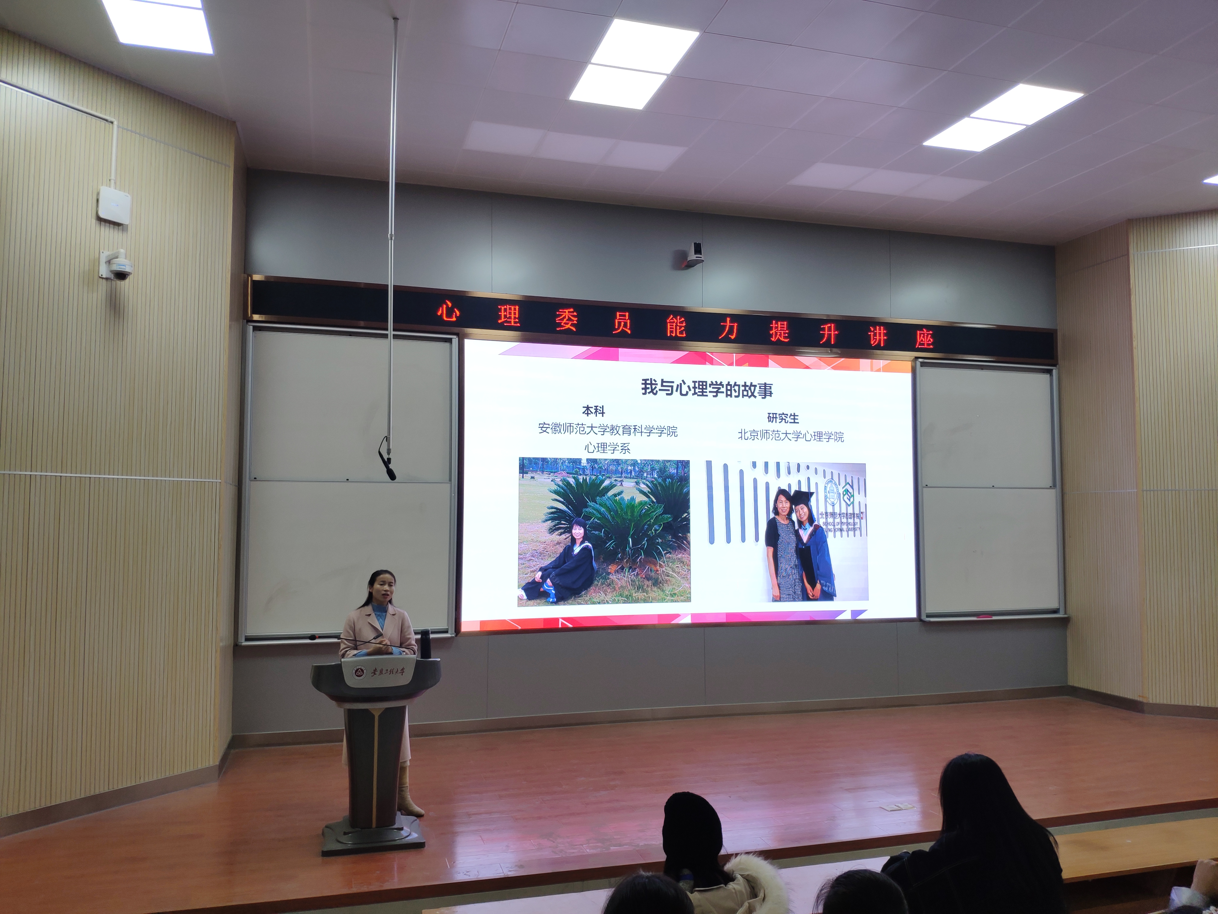 为进一步加强和改进我校大学生心理健康教育工作,在学生中普及心理健康知识,提高心理维护技能,保障和促进学生个体、群体的学业和生涯发展,缓解疫情时期学习、生活的焦虑,放松同学们的心情,体现我校学子自尊自信、理性平和、积极向上的精神风貌,树立心理健康意识,按照校2020年“12·5”心理健康活动节工作安排,学生处心理健康教育与咨询中心于12月17日在二教报告厅举办主题为“朋辈心理辅导者工作内容与方法”心理健康知识讲座,各学院心理部、班级心理委员、寝室长代表共200余人聆听了讲座,安徽师范大学心理健康教育中心沈艳红主任应邀主讲。
