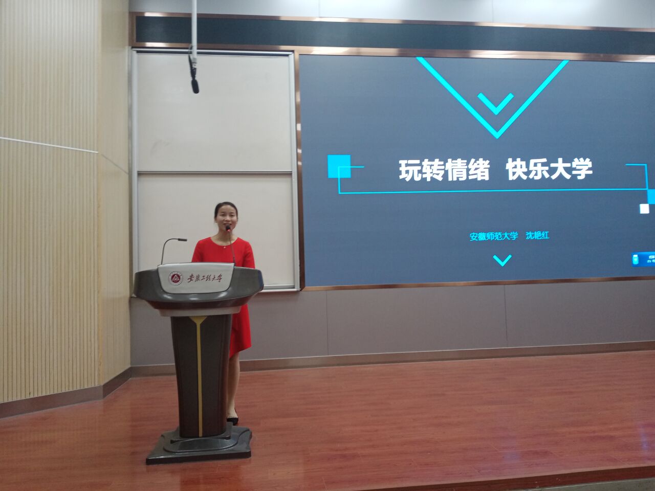 沈艳红以“玩转情绪 快乐大学”为主题,与同学们分享如何调整消极情绪,持积极视角看待学习与生活,他通过“右手抓,左手逃”、“你画我猜”等互动小游戏,使同学们感受个体情绪的变化过程;她结合自身成长经历,与同学们分享人的情绪是怎么产生的;解读情绪ABC理论的内涵,阐述情绪管理的重要性以及如何调节消极情绪等。她希望同学们在大学期间的成长加速度需具备积极视角、悦纳自我、善于交往的良好品质,坚持积极视角看待学习与生活,悦纳自我,树立自信、自觉自省、自律自强。