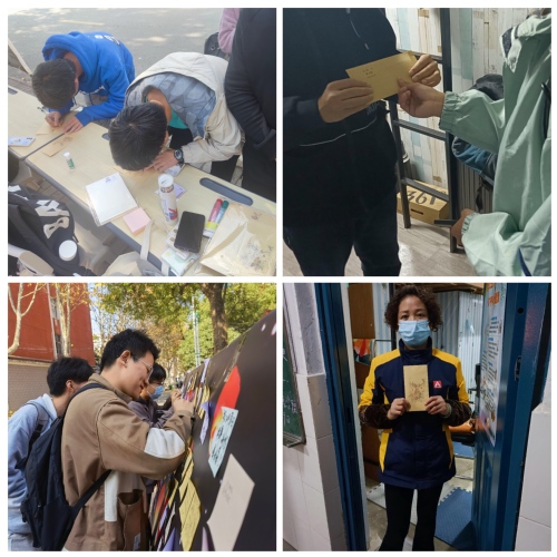 寄信台前,同学们拿着信纸书写,认真思索,字斟句酌地写下想说的话,活动参与者细心封装自己的信件,交由活动现场工作人员,再由主办方保管寄出。希望同学们在时光流逝中感受友谊的长存,更加珍惜友情,进而减少摩擦,避免人际问题带来的困扰,让自己处于一个积极乐观的状态。
