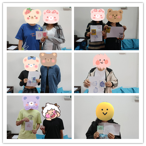 为积极响应“5.25”大学生心理健康节活动要求,促进大学生身心健康协调发展,缓解疫情防控形势下大学生的心理压力,丰富课余生活,心理中心于5月25号下午,在师活304室开展了以“趣味表情包”为主题的橡皮章制作趣味心理活动,共有20名学生分为十个小组参加了此次活动。