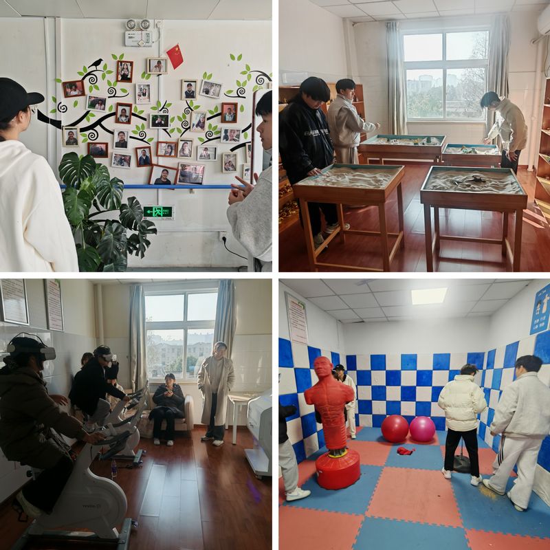步入心理健康教育中心,温馨舒适的环境瞬间吸引了同学们的目光。柔和的灯光、绿意盎然的植物营造出宁静放松的氛围。在中心工作人员引导下,同学们依次参观了个案咨询室、团体辅导室、心理测评室、沙盘活动室、运动解压室、音乐放松室、宣泄解压室、心理阅览室等功能区域,详细了解各功能室的用途和服务内容。