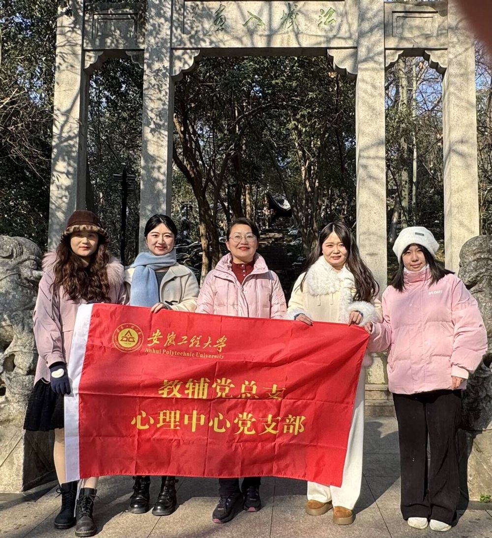 为进一步增强基层党组织凝聚力与战斗力,深入推进党史学习教育常态化长效化,筑牢信仰之基、补足精神之钙。安徽工程大学心理中心党支部于1月21日下午组织全体党员前往芜湖市赭山公园,开展了一场沉浸式、体验式的主题党日活动。本次活动巧妙融合红色寻访、城市发展感悟与专业实践思考,让全体党员在实地见学中深化党性修养,凝聚奋进力量。